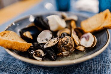 Cozze, vongole, vino bianco, prezzemolo, olio e.v.o., sale, pepe